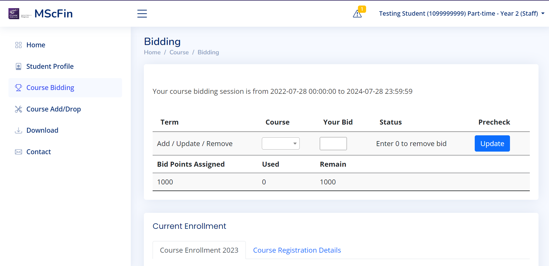 "The first" Course Bidding System in CUHK
